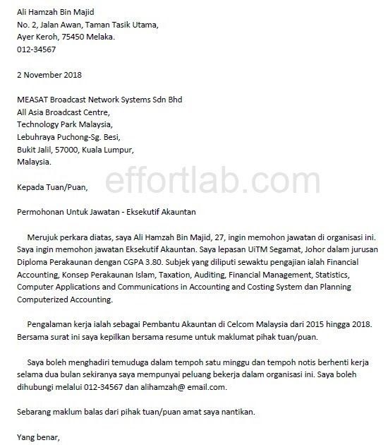Ada beberapa perkara yang anda perlu elakkan untuk memohon pekerjaan menerusi email antaranya. Contoh cover letter untuk fresh graduate dalam bahasa melayu. Adakah anda ingin membuat permohonan kerja kosong kerajaan atau swasta? 9 contoh application letter yang bikin kamu gampang dapat kerja. Dapatkan contoh cover letter anda disini.