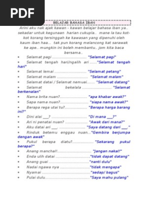 Alhamdulillah Al Quran Pertama Dalam Bahasa Iban Muhtar Suhaili As Sarawaki from muhtarsuhaili.files.wordpress.com Dapat belajar banyak bahasa memang menjadi satu kelebihan kepada diri. Sesetengah perkataan bahasa iban yang ada tanda ' di belakang bermaksud perkataan itu mesti disebut dengan hentian glotis. Bahasa iban aram meh kitai belajar jako iban (marilah kita belajar cakap iban) so sekarang nak ajar ayat dalam bahasa iban : Aplikasi yang saya gunakan untuk belajar bahasa iban. Start studying bahasa iban phrases. Girl, kulba, on behalf, family day, on behalf of. Jom cakap iban pulak ! 33 ulih macha dikena ngulihka penerang dikena nyaut tanya.